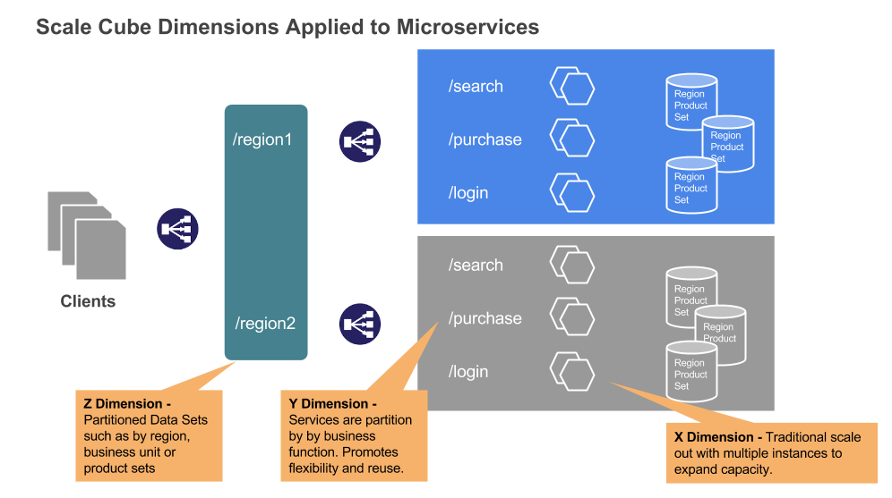 With older monolithic solutions there was a restricted number dimensions that could be used for scaling capacity. Vertical scaling involved allocation of a more and more resources on a single host server. It was not very flexible and there is a finite upper limit. The alternative was to scale horizontally with multiple instances but that too has significant challenges for a monolithic architecture solution.